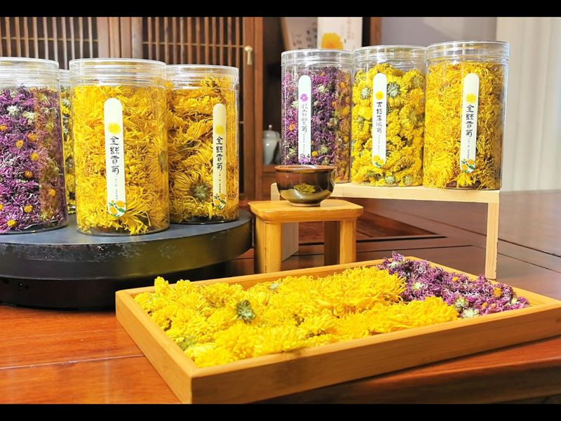 金絲貢菊(桶裝)、凝霜紫菊(桶裝)、太極莊冰菊(桶裝)